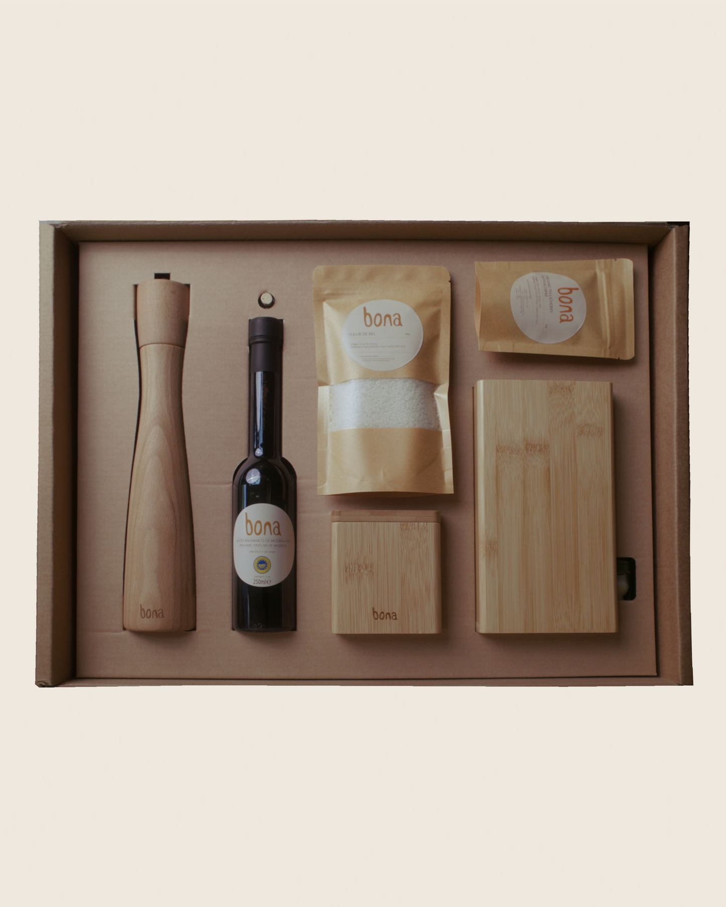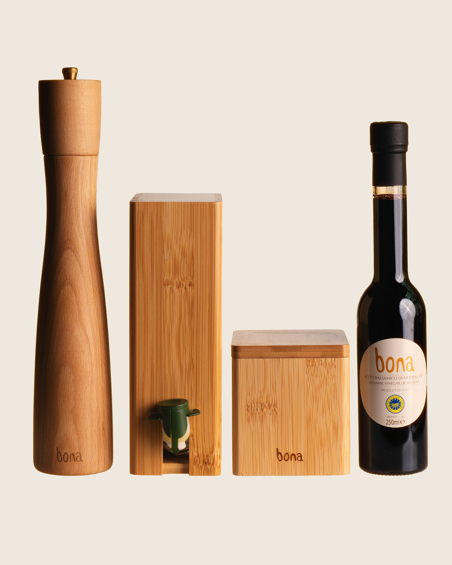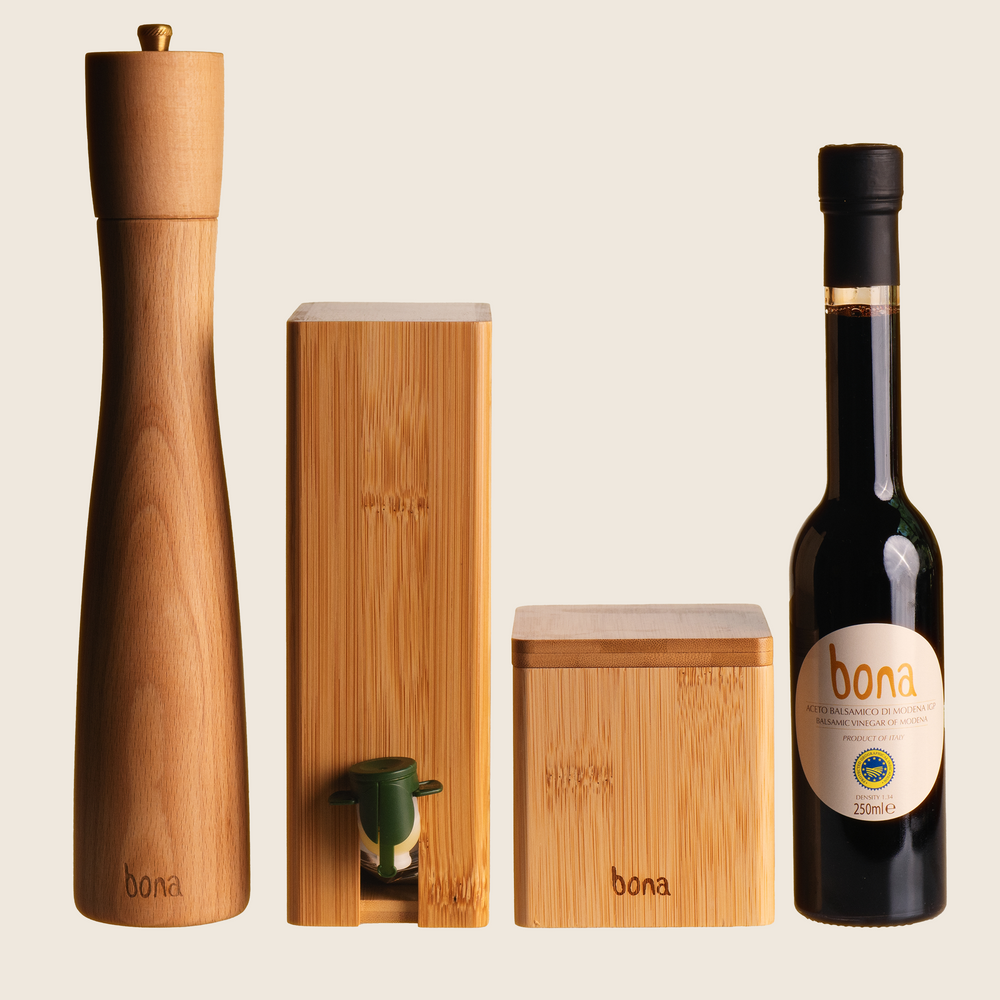 The Balsamic is sourced from a small family owned business based in Modena, Italy. The 1.34 measurement refers to the vinegar’s density, which is 34% more than that of water, resulting in a rich, viscous product. The Balsamic comes in an elegant glass bottle and is available to purchase individually or with all 3 other products.
