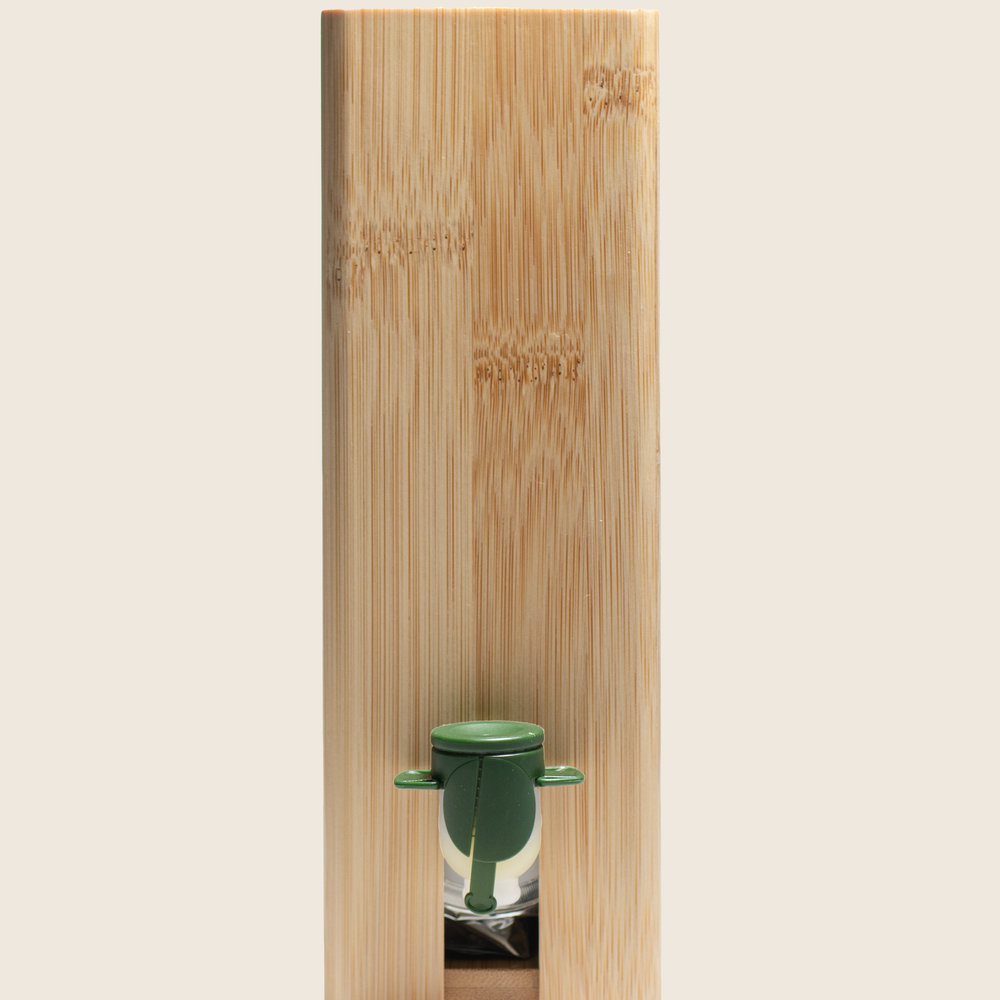 The oil is packed in a vacuum sealed bag with a tap at the base. This protects it from both light and oxygen, ensuring that the taste is preserved until consumption. As the oil is dispensed through the tap, the space is not replaced by oxygen, rather the bag contracts. Combined with the opacity of the bag this ensures that the two primary factors in the degradation of oil, oxidation and photo-oxidation do not occur. This delivers an oil, whenever you use it, as fresh and packed full of goodness as the day it was milled! The bag sits in a hand crafted bamboo box, specifically designed to last and fit onto your kitchen surface.